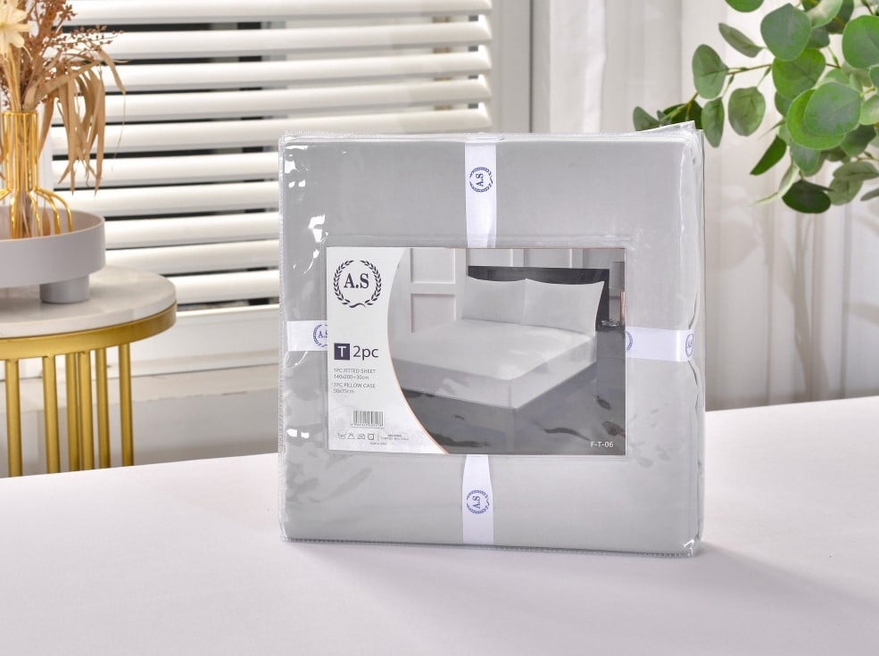 شرشف فيتد مطاط مفرد ونص 2 قطع - رمادي فاتح
