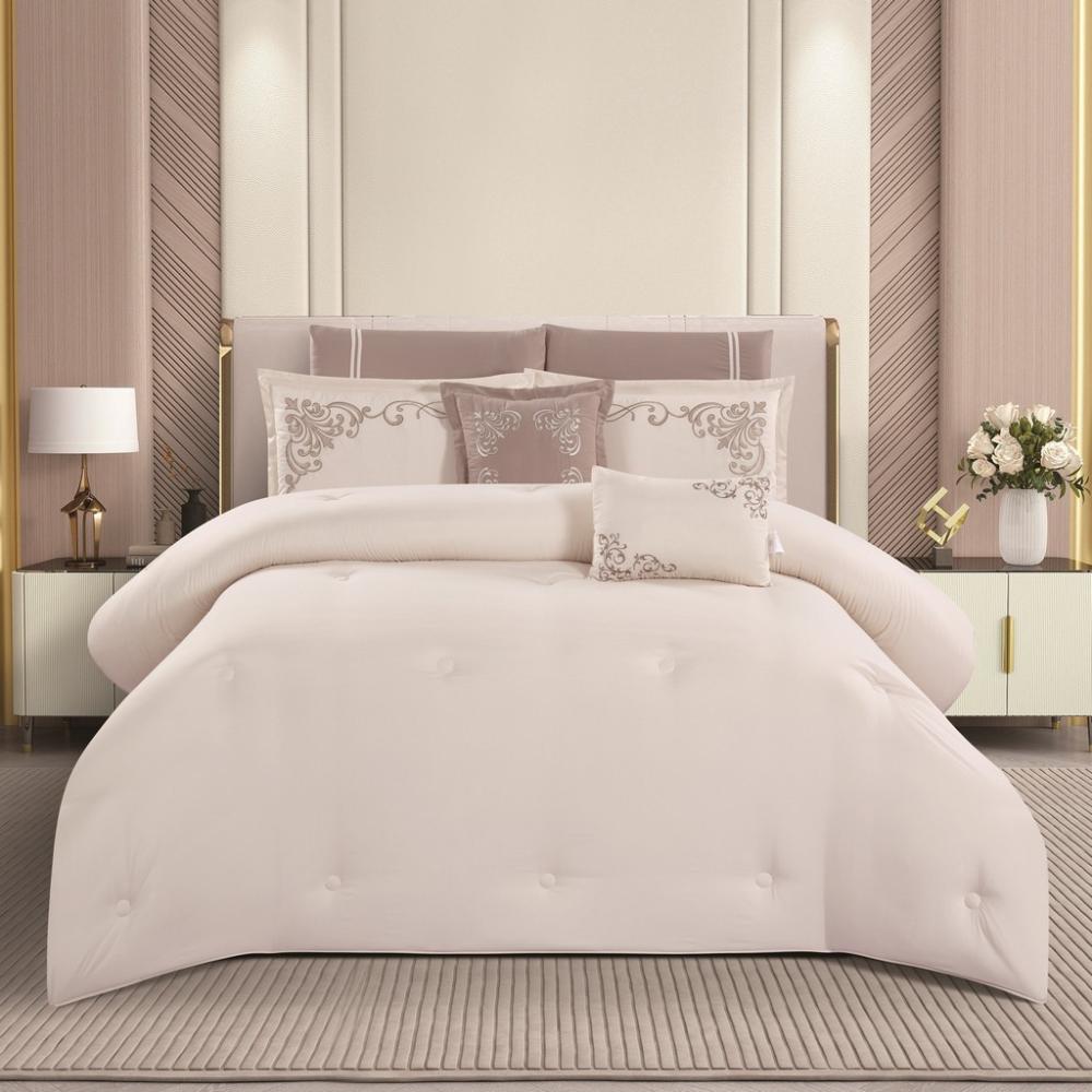 طقم لحاف نتاليا وجهين مطرز وسادة مزدوج 8 قطع