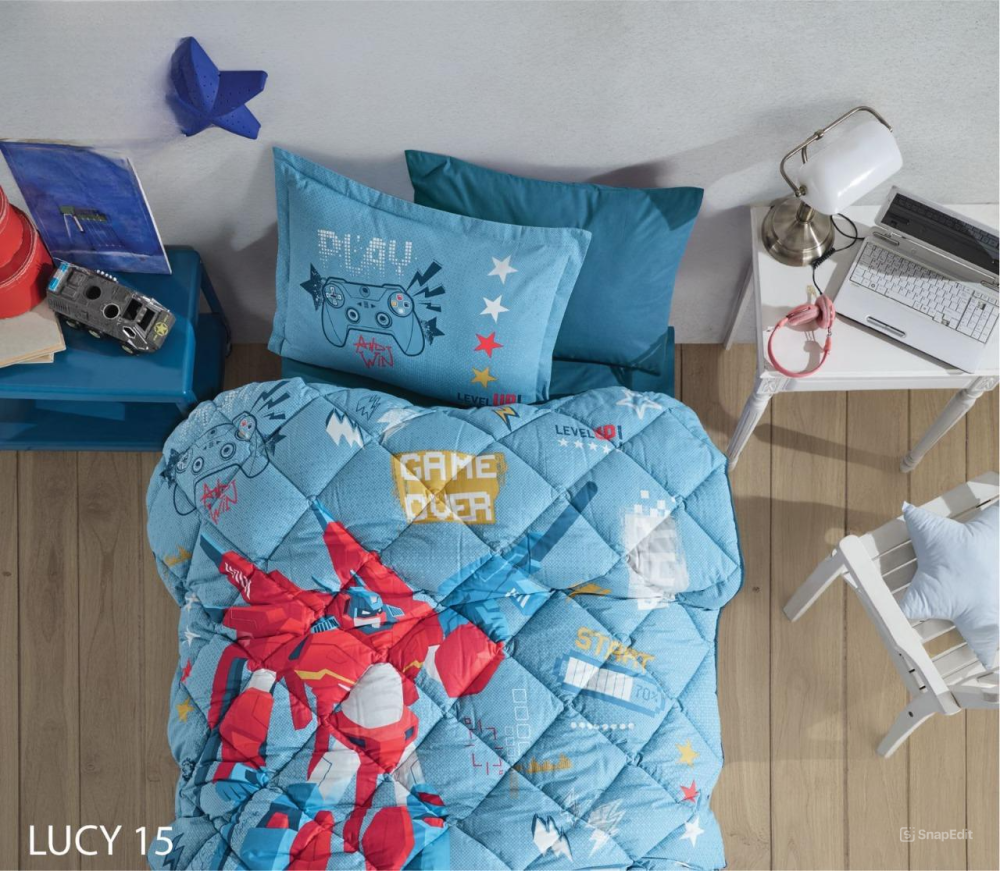 استمتع برؤية طفلك ينعم بنوم هانئ ومريح مع طقم مفارش Lucky المصنوع من القطن 100% بنسبة 300 غرزة. تصميمه الجذاب والألوان الزاهية سيجعل غرفة نوم طفلك مكانًا مبهجًا ومريحًا. القطن الطبيعي يضمن نعومة فائقة على بشرة طفلك وحماية من الحساسية. مصنوع في تركيا بمعايير جودة عالية."