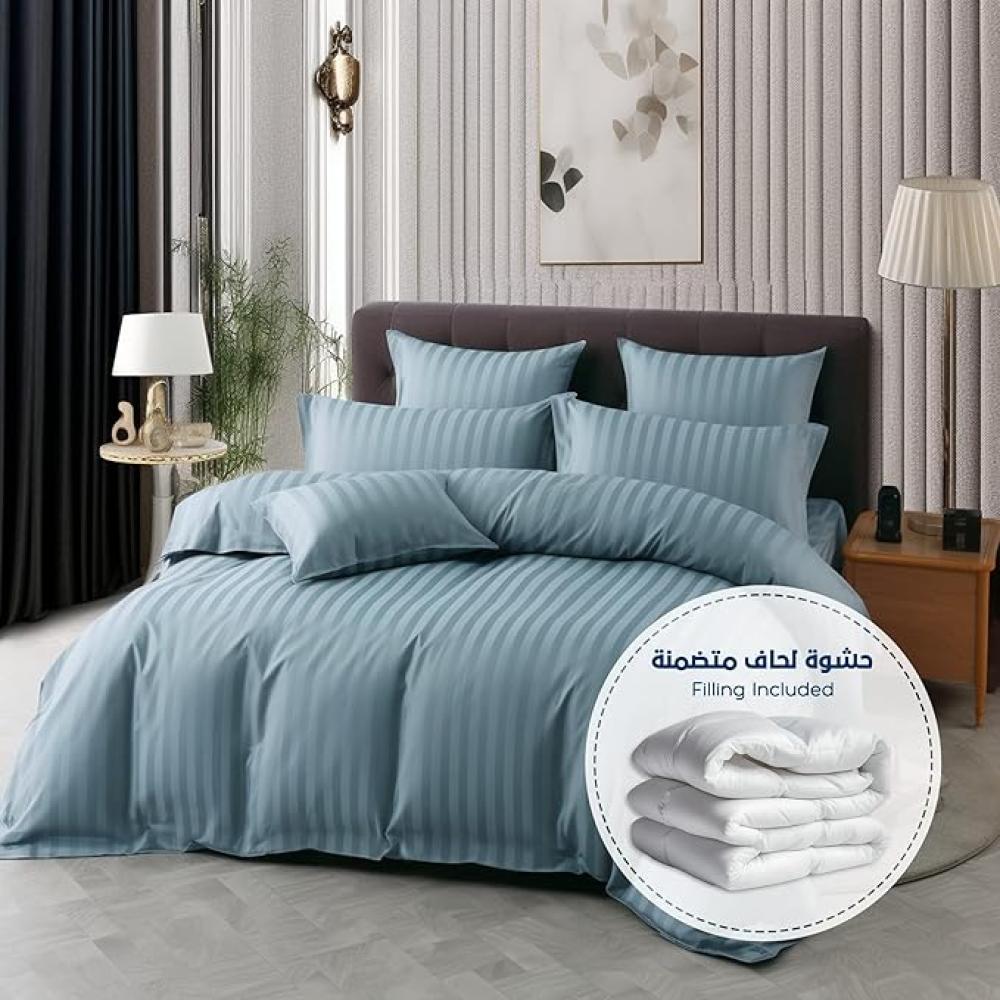 مفرش فندقي مزدوج - 9 قطع -ازرق