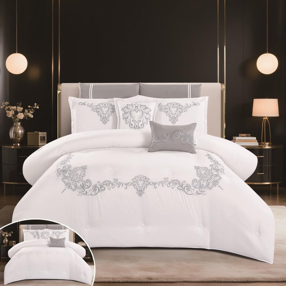 طقم لحاف نتاليا وجهين مطرز وسادة مزدوج 8 قطع