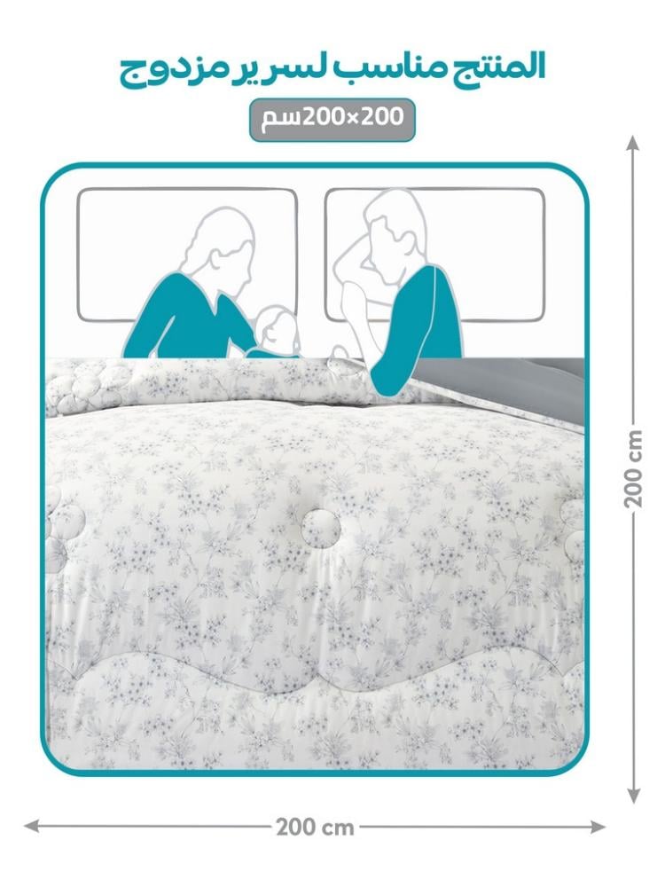 يأتي المفرش بالتصميم المشجر مما يضيف سحرا وجمالا ملهما من الطبيعة الى غرفة نومك والوجه الثاني يأتي بلون متناسق لتصميم لمظهر هادئ وانيق. مصنوع من القطن الفاخر مع حشوة كثيفة تحتوي على 230 غرزة لكل متر مربع. ملمسه الناعم يجعله مناسبا لجميع المواسم .